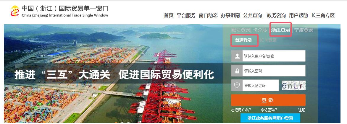 中国(浙江)国际贸易单一窗口平台(https://zj.singlewindow.cn/,以下简称 “单一窗口”)支持浙江电子口岸、宁波电子口岸原有账号直接登录。同时,平台为新用户设置了注册路径,新用户需先完成统一注册,再点击 “浙江 / 宁波登录” 模块,选择 “普通登录” 方式进行登录。