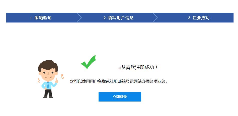 (4)注册成功。点击立即登录进入登录页面,可使用您注册的账号登录业务系统。